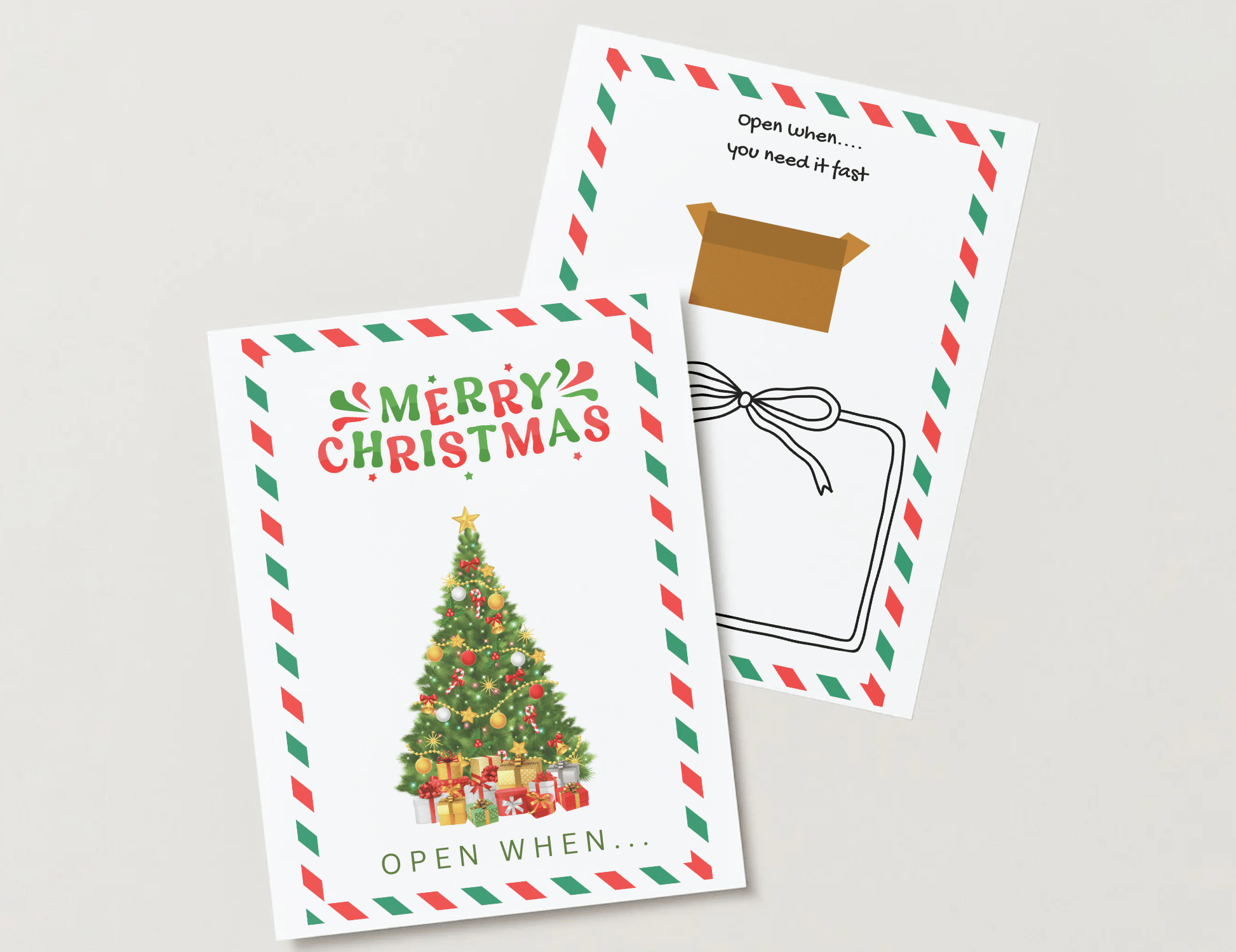 Last year, I stumbled across a few “Open When…” ideas online and decided to make my own version. Each of my kids got a little booklet filled with “Open when…” pages — and behind each one? A gift card.